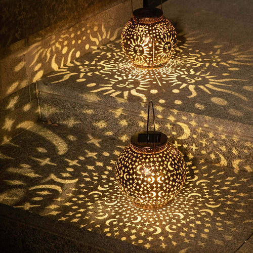 2 Pack Metal Moon Star Sun Solar Outdoor Lamps