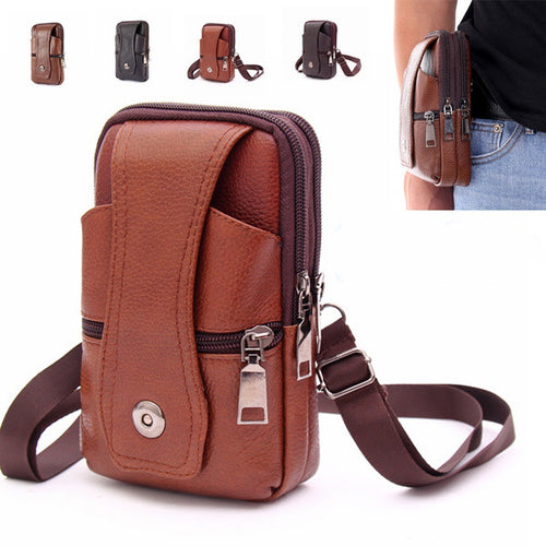 Fashion Men PU Leather Waist Bag, Multifunction Fanny Pack, Large Capacity Belt Bag