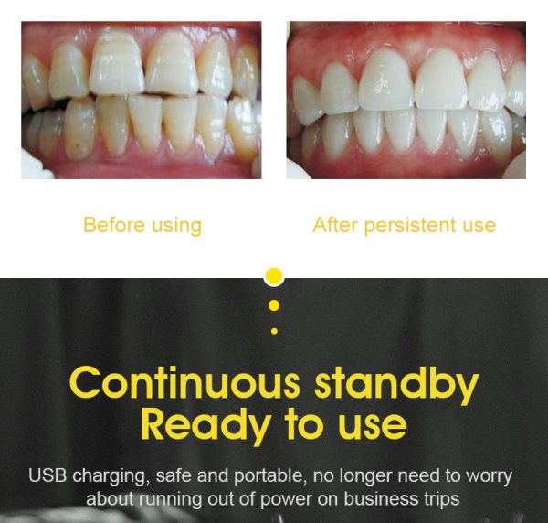 1.High-frequency vibration technology: Clean tooth stains through ultrasonic vibration, and solve most problems such as tooth integral and dental bacterial plaque. The electric tooth calculus can be operated manually to gently remove the calculus.
