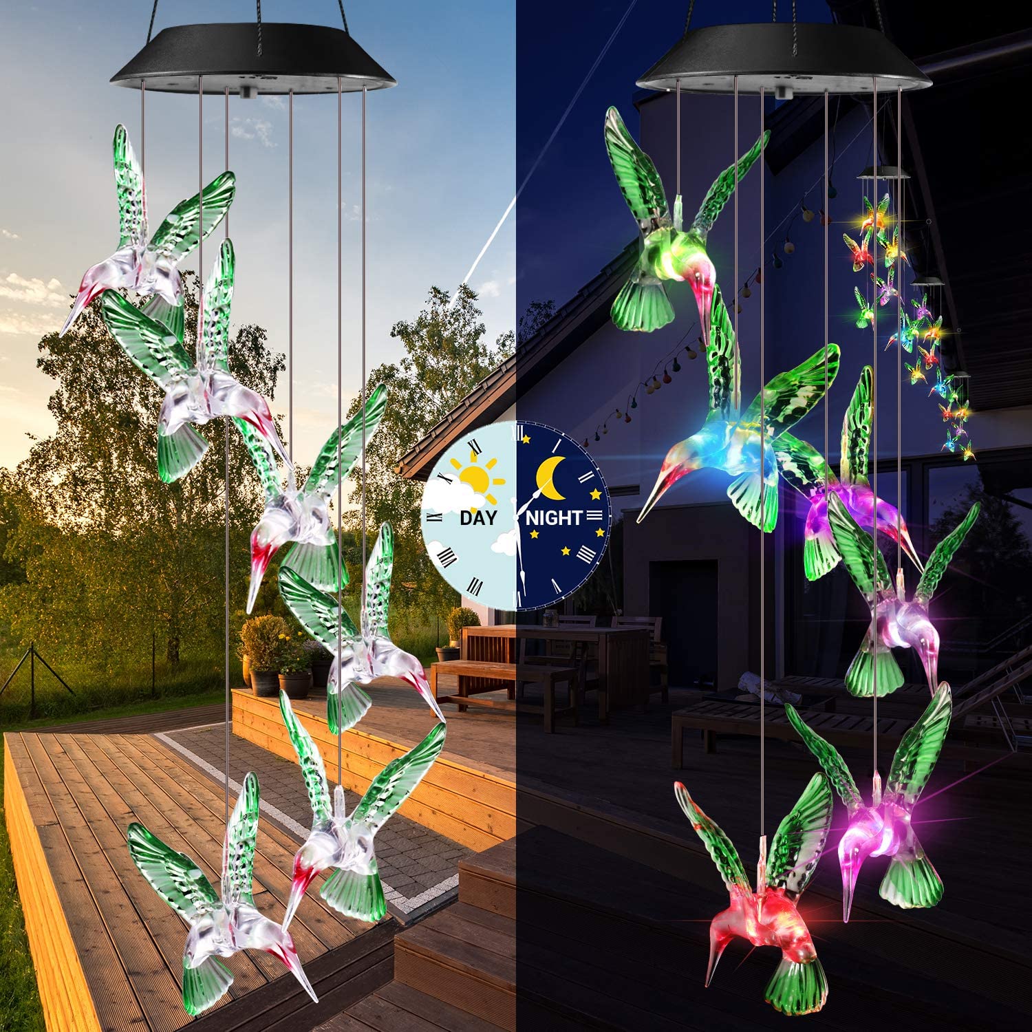 ❤ Color Changing Chime Lights: Alternately randomly change color between Red, Green, Yellow, Blue, White, Purple, Cyan and colorful hummingbirds fly at night.