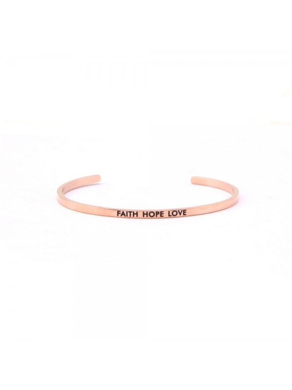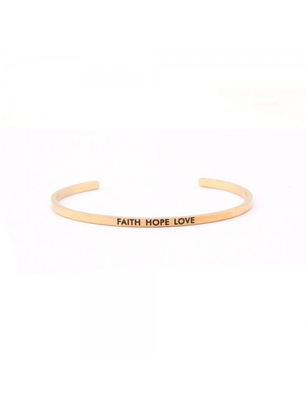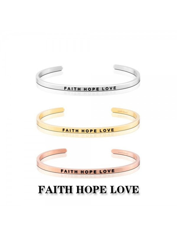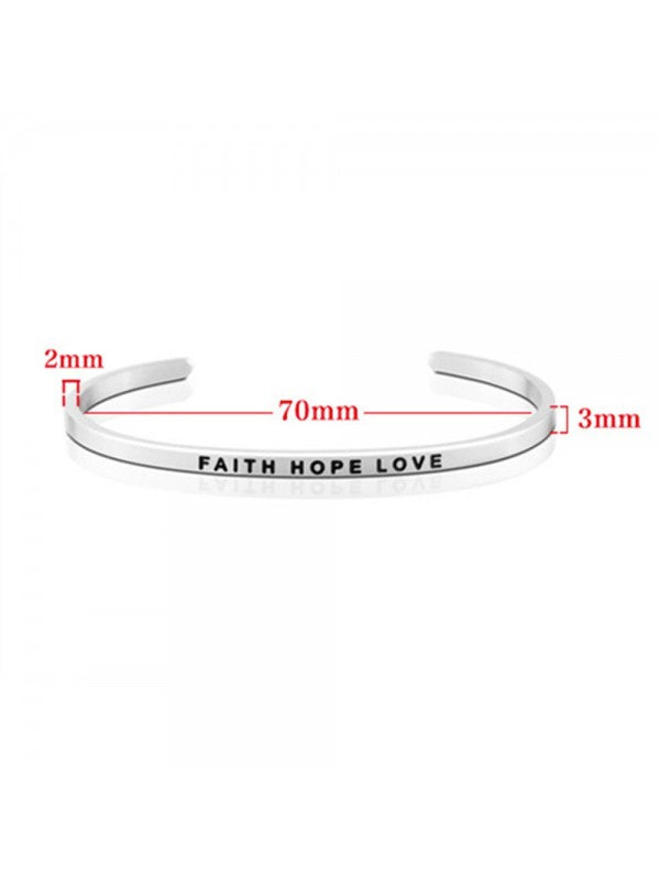 - Simple but lovely words of inspiration, this message engraved bangle bracelet serves as a must-have jewelry accessory to adorn the outfit, enlighten the mind and empower the spirit. Whenever you're feeling down or losing strength, just read the inscribed words on it and gain the motivation to continue your day.