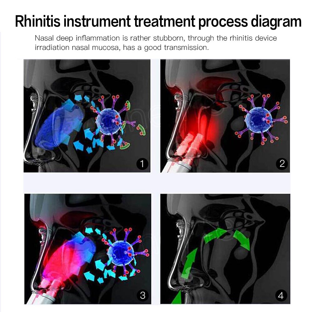 Laser Rihinitis therapeutic apparatus is based on modern medicine and clinical practice research and development of semiconductor laser therapeutic instrument, the instrument adopts the semiconductor Light produce wavelength of 660 nm, 8-12 mw low visible laser intensity, irradiation treatment to the nasal cavity, activate blood physiology.