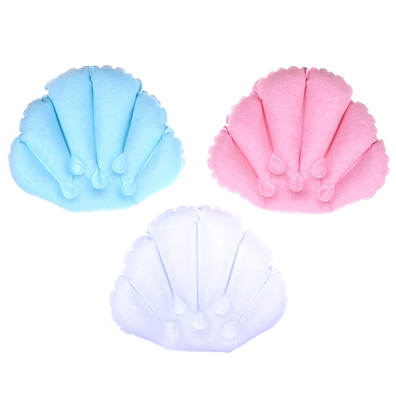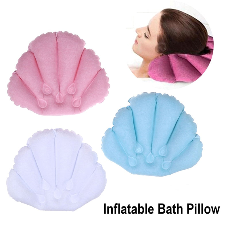 3, The bath pillow is inflatable, and it can be deflated when not in using, does not take up too much space, the back also features two suction cups for convenient to fix.
