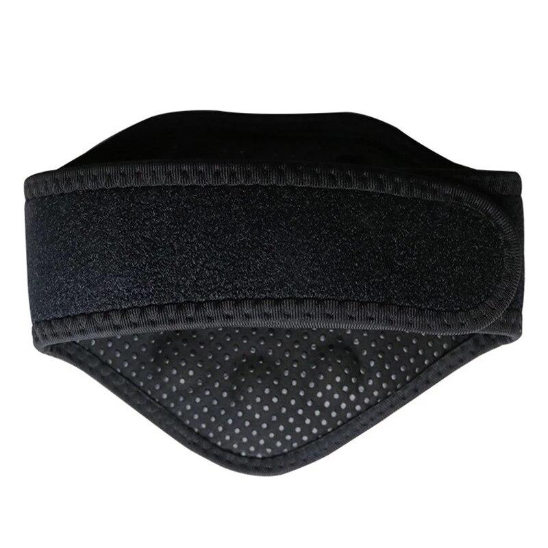 2. Put the neck brace support on around your neck, please note the self-heating side should be on the back of your neck.