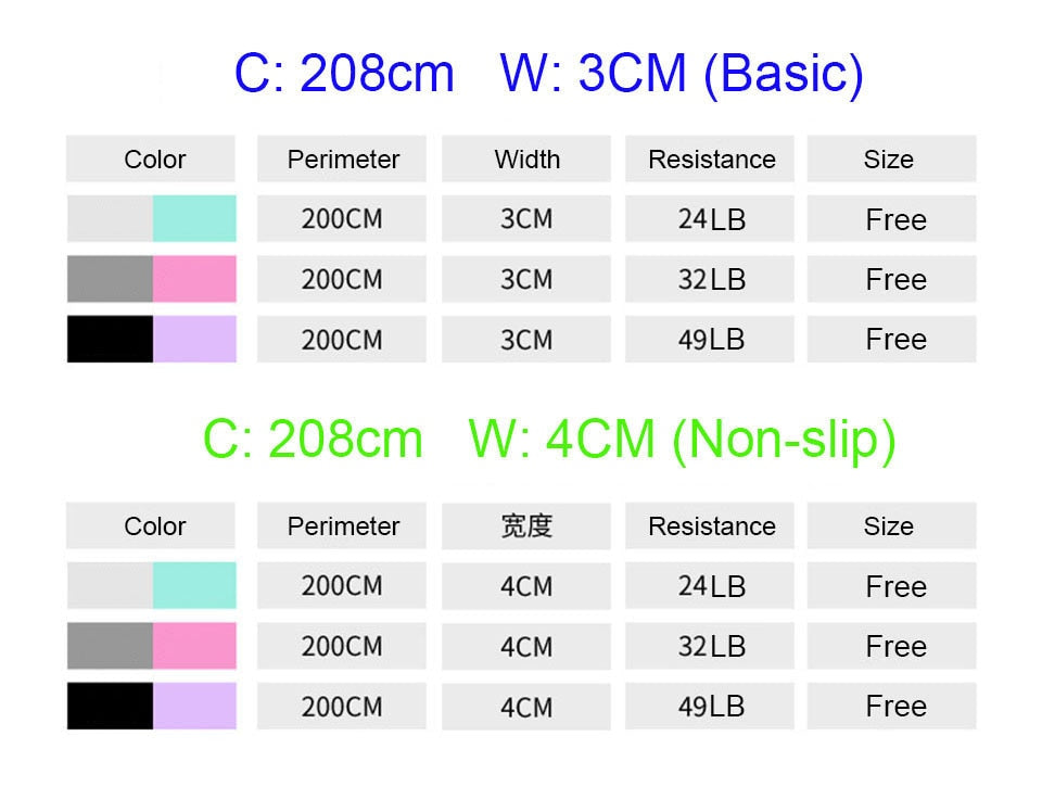THREE strength levels included (light, medium, heavy). ALL other brands have a ''heavy'' band that is too small & ''easy'' band that is too loose. We have no sizing issues- we vary the strength of each fabric to change the resistance not the band size. Every band fits perfectly.