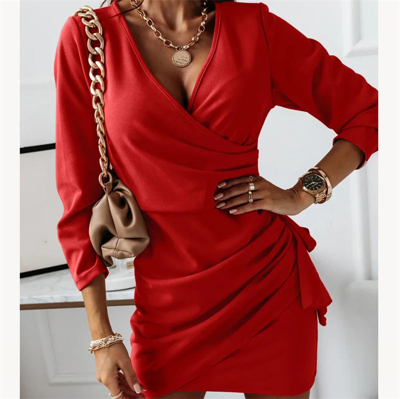 1 x Women's V-Neck Long Sleeve Ruched Dress